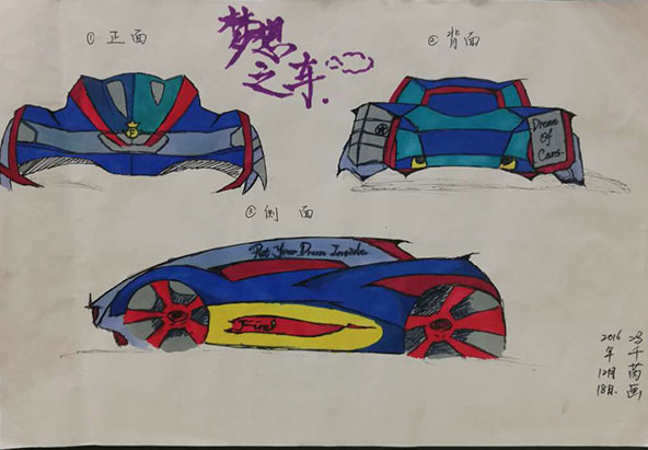 绘画要求所提交的作品均为手绘,用富有想象力的色彩,描绘出你心中的“梦想之车”!