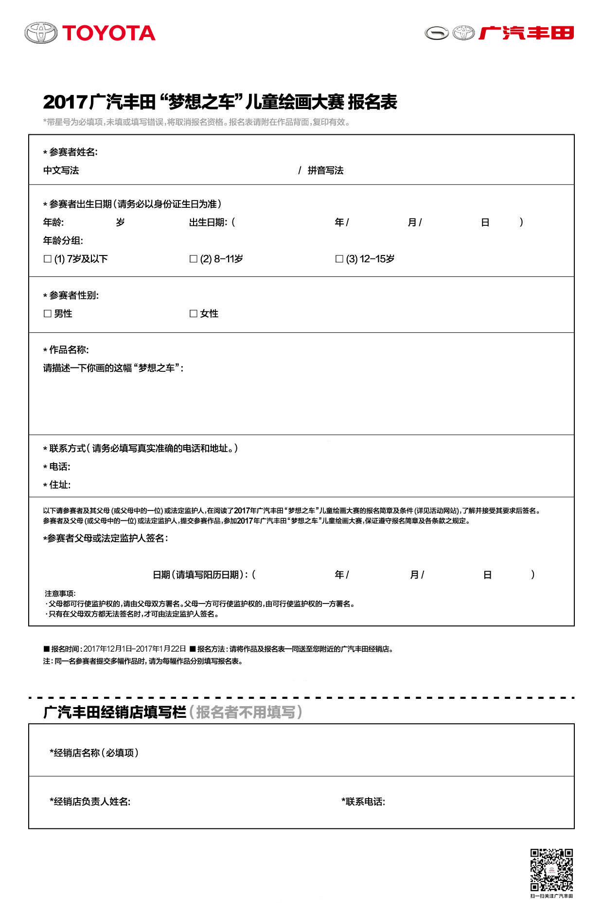 征集方式:提交作品原件至活动指定广汽丰田经销店